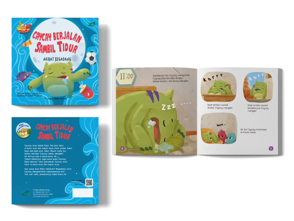 Sinopsis : Caycay suka sekali tidur. Dia bisa tidur di mana saja dan kapan saja. Saat duduk, tidur. Saat berjalan pun, tidur. Bukan cuma itu, ketika tertidur Caycay selalu mengiler! Air liurnya ada di mana-mana. Hiii …. Teman-temannya juga kesal pada Caycay. Baba mencari tahu penyebab Caycay suka tidur di mana saja dan kapan saja. Apa yang akan Baba temukan? Bagaimana cara Caycay menghentikan kebiasaannya itu? Yuk, cari tahu jawabannya dalam buku ini!